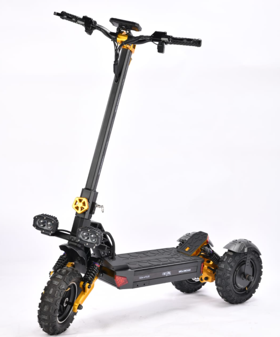 Под двумя передними колёсами спрятаны два независимых электродвигателя. Вместе они выдают колоссальные 2400 Вт мощности. На практике это означает одно: у этого самоката всегда есть запас сил. С таким полным приводом вы с лёгкостью трогаетесь с места, даже в гору или на сыром газоне. Разгон до максимальных 70 км/ч происходит быстро и плавно, без рывков.