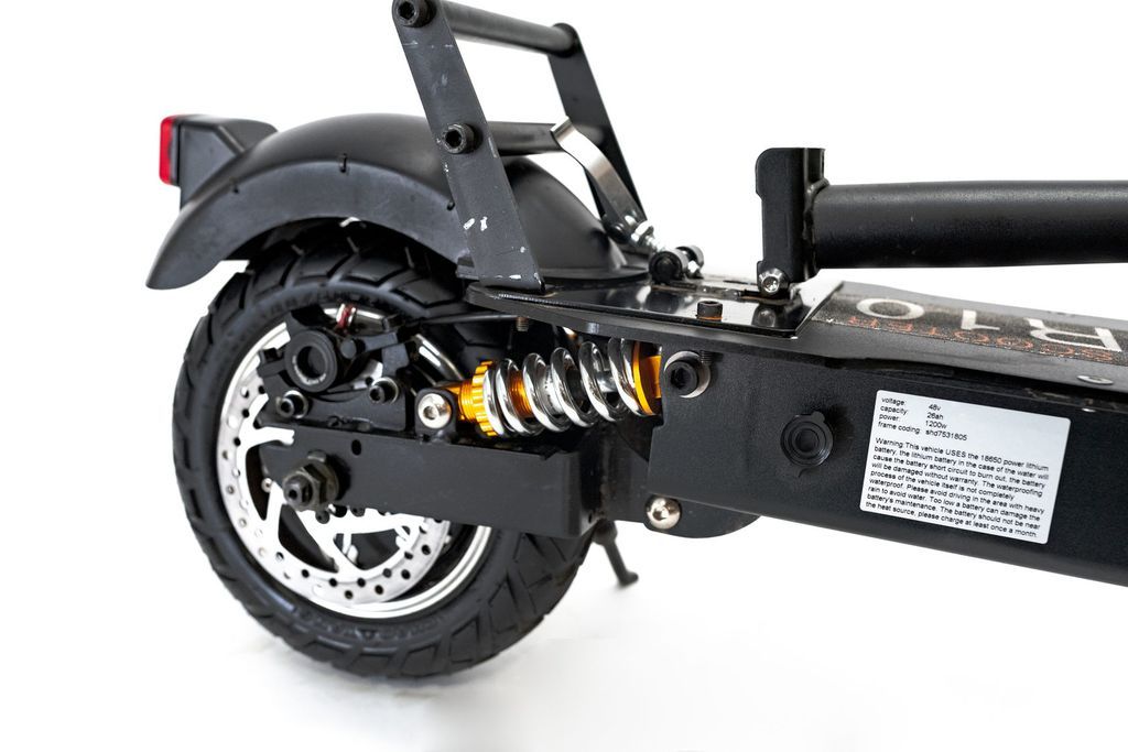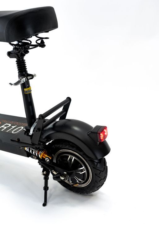 Электросамокат Currus R10 оснащен двойными амортизаторами спереди и двумя большими пружинами сзади. Они хорошо справляются с неровностями и дорожными препятствиями.