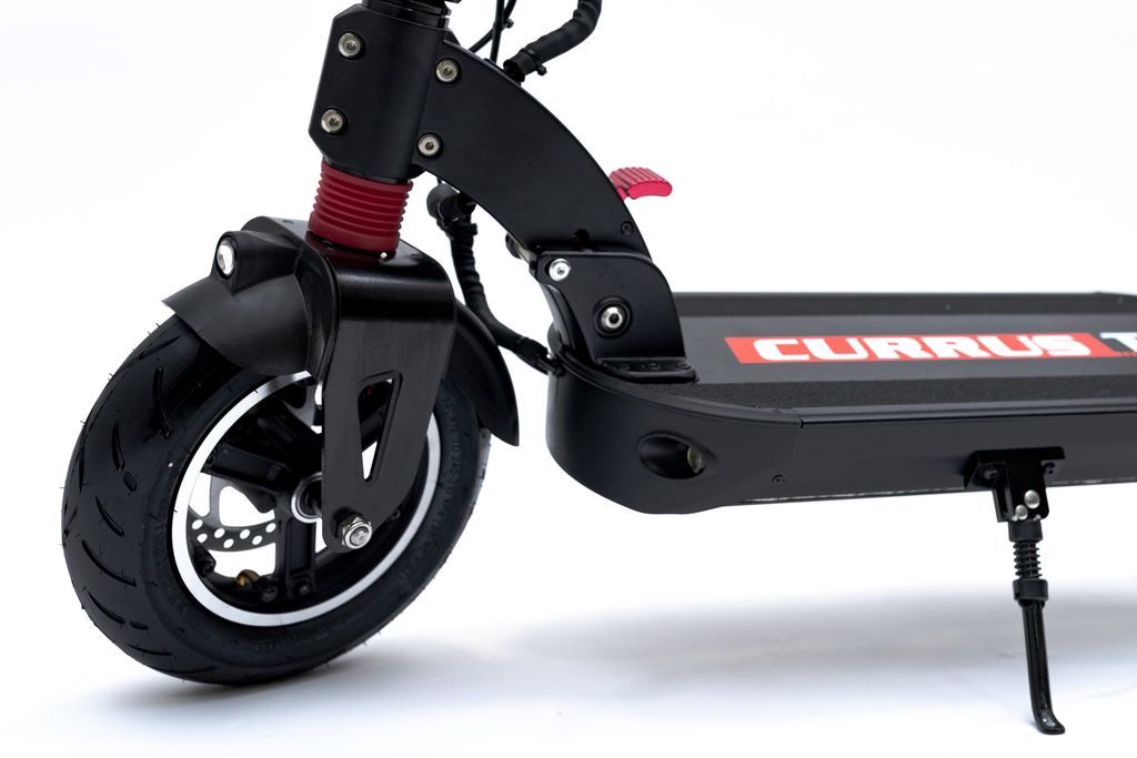 На самокате Currus T10 установлено 10-дюймовое 600 Вт мотор-колесо. С пиковой мощностью до 900 Вт. Это обеспечивает уверенное ускорение и экономию батареи при езде по прямой.