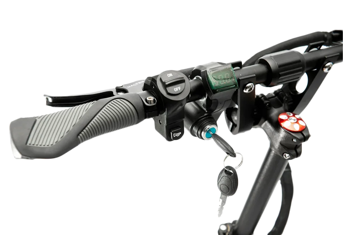 - Установлен замок блокировки, самокат невозможно включить без ключа