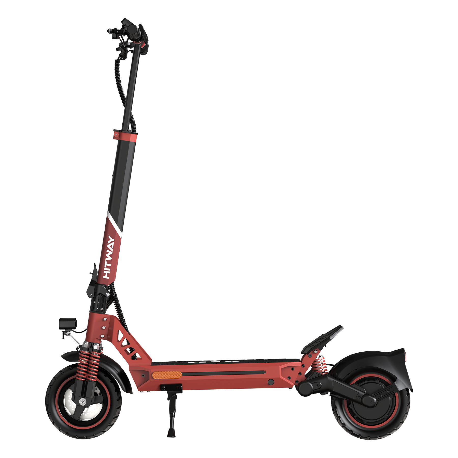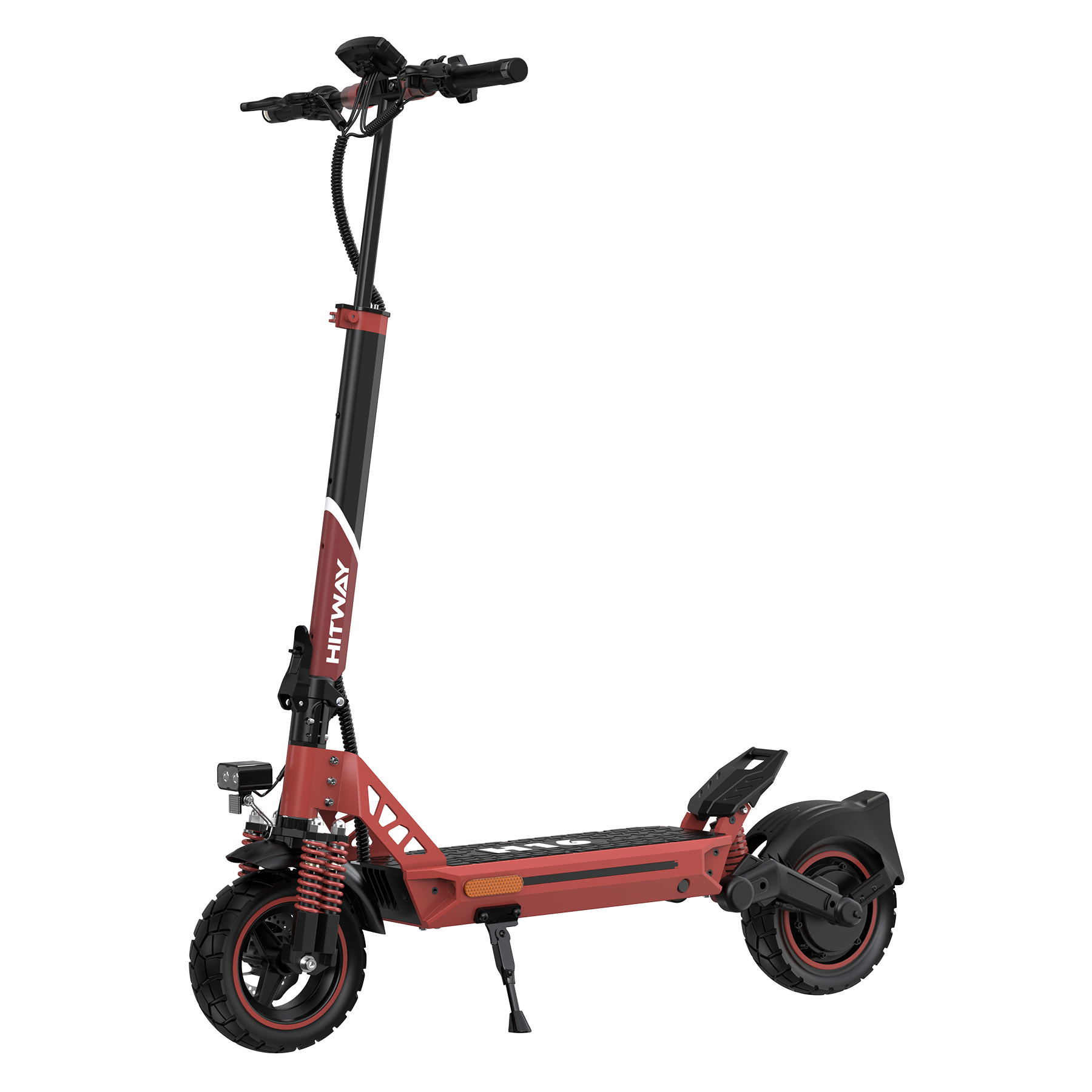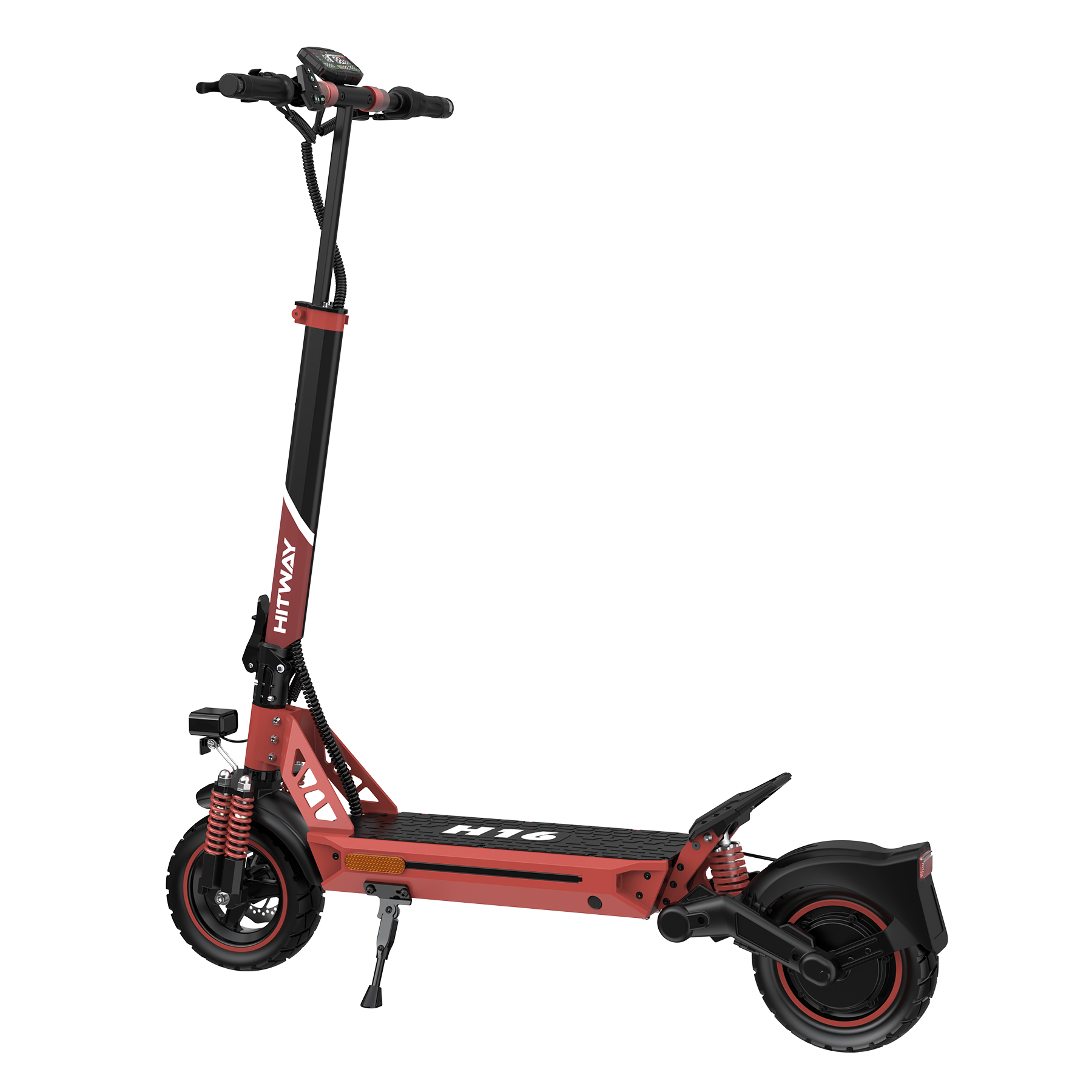 HITWAY H16 предлагает высокий уровень комфорта благодаря передней амортизационной вилке, которая сглаживает неровности дороги и обеспечивает плавный ход. Большие 10-дюймовые колеса обеспечивают отличное сцепление с дорогой, что особенно важно при движении по городским улицам.