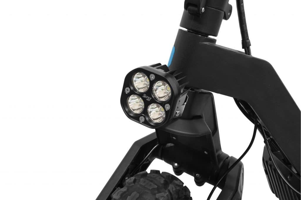 - Светодиодная фара с 4 яркими диодами отлично освещает дорогу, имеет регулируемый угол наклона.