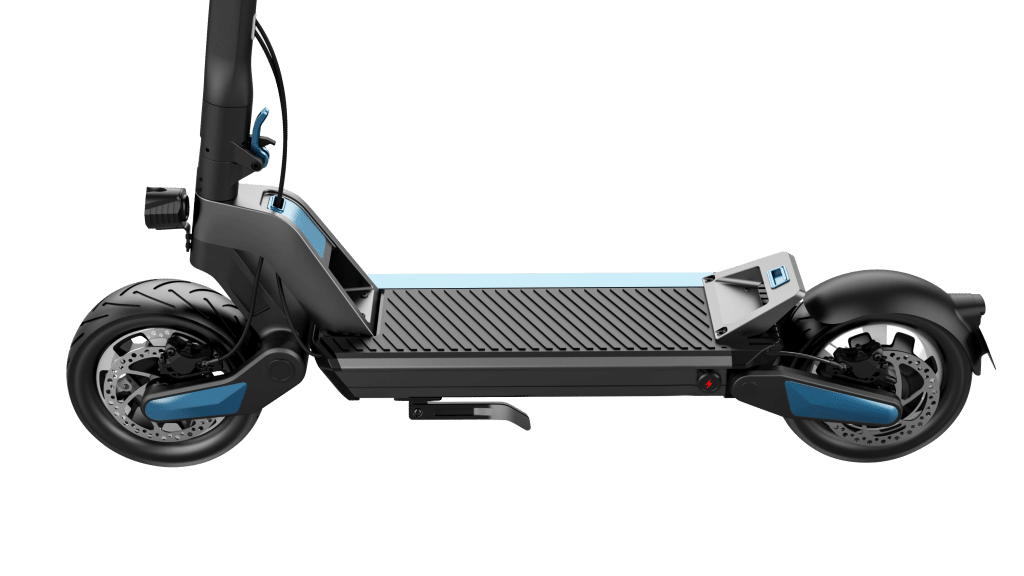 - За безопасность здесь отвечают дисковые тормоза с электронной системой распределения усилий. Самокат тормозит мягко и точно.