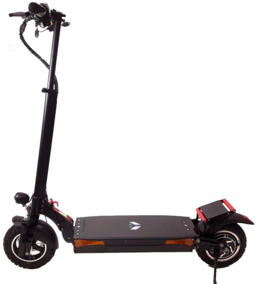 Как говорилось ранее, модель оснащена электродвигателем мощностью 1000 Вт, который расположен в заднем колесе. Вместе с контроллером на 25А и аккумулятором с напряжением 60V самокат творит чудеса. Ни один "одноклассник" не может похвастаться таким набором скорости и такой тягой в горку. Даже с большим весом райдера самокат быстро разгоняется и уверенно везет даже в затяжные подъемы.