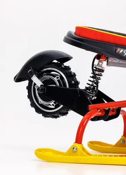 Снегокат имеет достаточную мощность для двух детей или небольшого взрослого, позволяя быстро набирать скорость. Это делает его идеальным для проката, так как разряженную батарею легко сменить на заряженную.