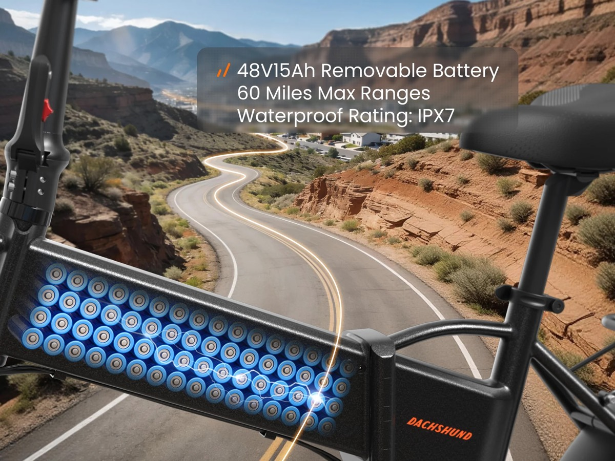 Электровелосипед PUCKIPUPPI DACHSHUND оснащён двигателем мощностью 500 Вт, который обеспечивает уверенный разгон и позволяет развивать скорость до 45 км/ч. Такой мощности достаточно для комфортного передвижения по городу и уверенной езды по загородным маршрутам. Задний привод гарантирует хорошее сцепление с дорогой и устойчивость при старте с места, а также при движении по мокрому асфальту или грунтовым дорогам. Двигатель работает плавно и тихо, не создавая лишнего шума и вибраций, что делает поездки более приятными.