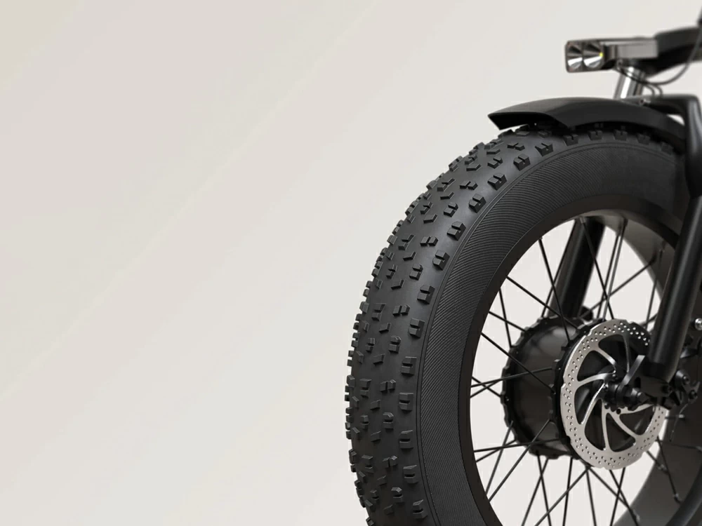 Все три колеса имеют диаметр 20 дюймов с шириной покрышек 4 дюйма, что относится к категории fatbike и обеспечивает уверенное передвижение по различным типам покрытия. Широкие шины создают низкое удельное давление на грунт, предотвращая проваливание в песок, снег и болотистую почву. Увеличенная площадь контакта с дорогой повышает устойчивость и снижает риск заноса на скользких поверхностях.