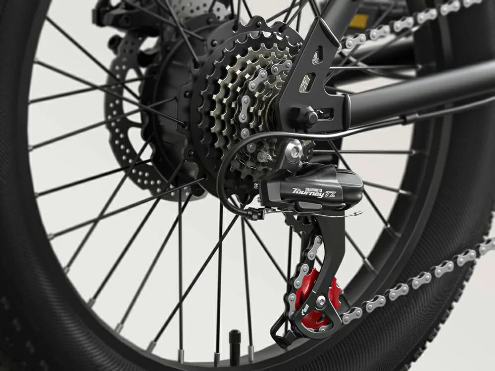 Семиступенчатая трансмиссия SHIMANO позволяет водителю выбирать оптимальное передаточное отношение для конкретных условий движения. Механическая трансмиссия работает независимо от электропривода, что дает возможность использовать велосипед в обычном режиме при разряженной батарее или для получения физической нагрузки. Переключение передач осуществляется манетками на руле и отличается четкостью и надежностью даже при интенсивной эксплуатации.