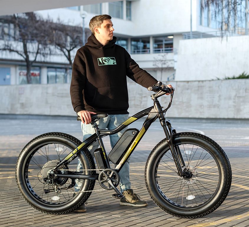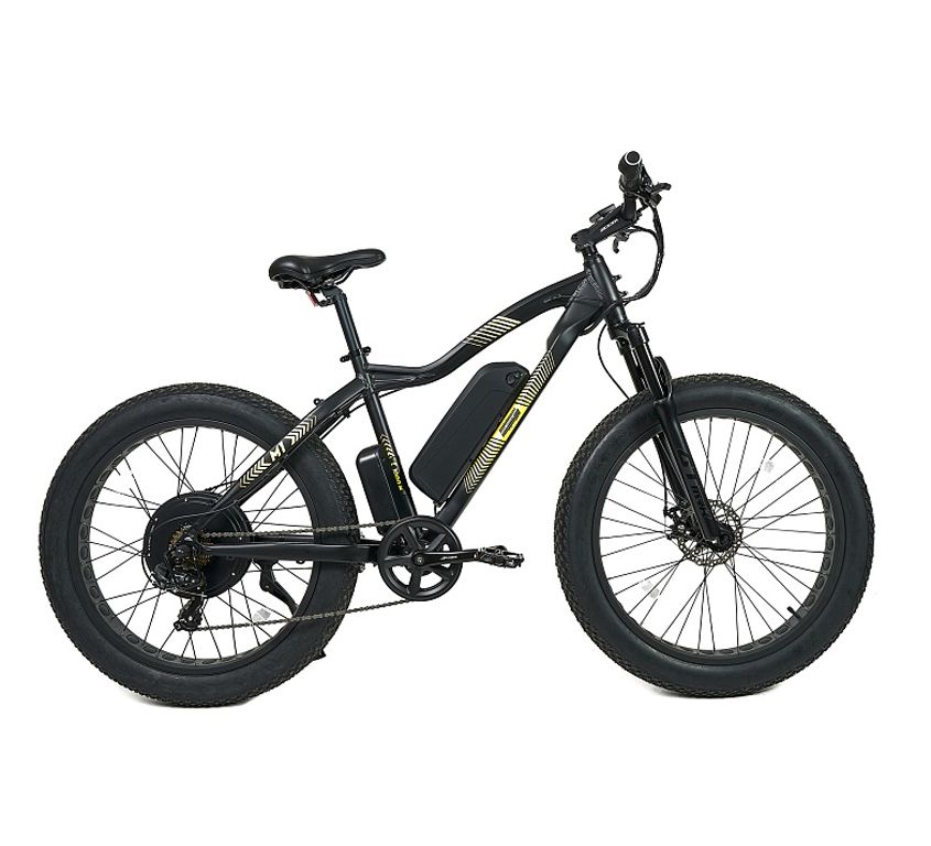 За счет своих широких колес размерностью 26х4 дюйма. Уже много лет люди по всему миру каждый день на своем опыте доказывают неоспоримые преимущества широких колес FatBike по комфорту и проходимости.Такие колеса позволяют эксплуатировать велосипед круглогодично и на любом покрытии, будь то песок, снег или грунт.Но важно понимать, что в сочетании с электрическим мотором такой велосипед прекрасно чувствует себя и на асфальте. Вы итоге мы имеем абсолютно универсальный вседорожный, быстрый, проходимый и комфортный аппарат.