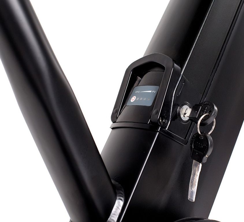 - Встроенный в раму и при этом быстросъемный аккумулятор, запираемый на ключ зажигания.