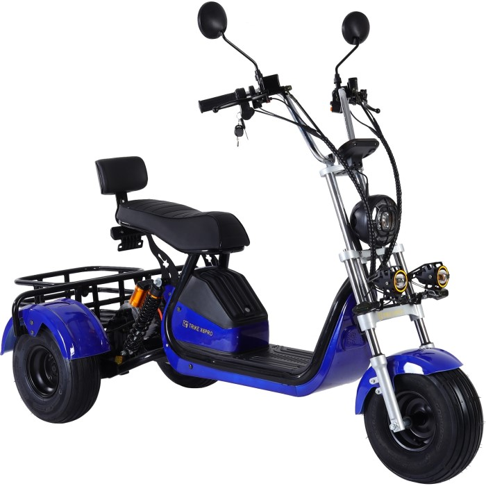 CityCoco Trike GT-X6 также оснащен фарами и ходовыми огнями, что значительно увеличивает видимость в темное время суток и обеспечивает дополнительную безопасность. Наличие корзины делает его удобным для перевозки вещей, что особенно актуально для городских поездок.