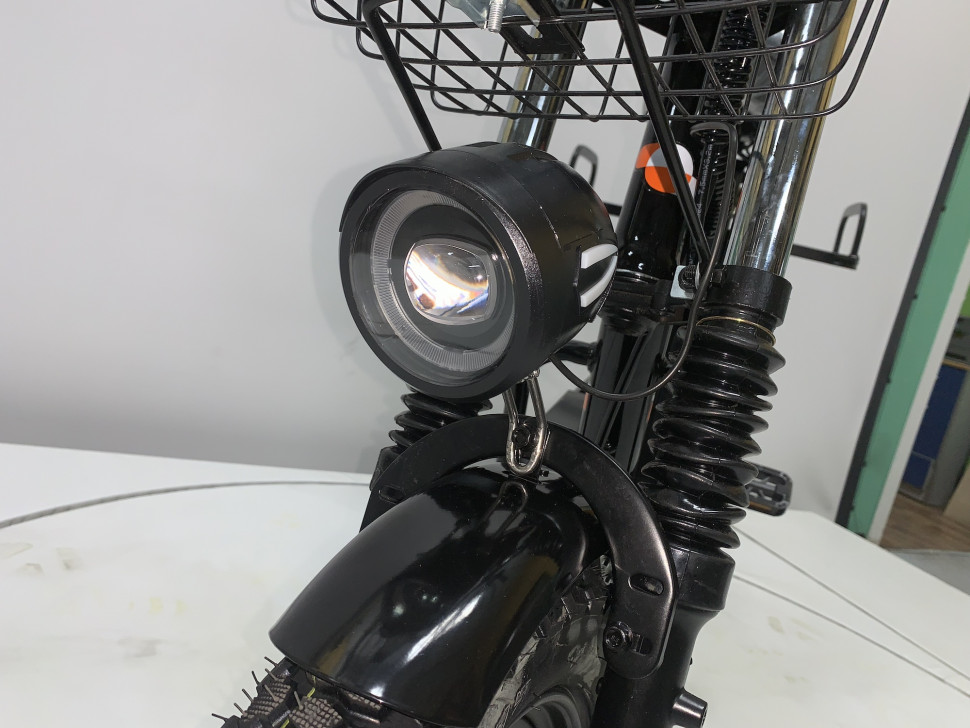Электровелосипед оснащен мотор-колесом, что обеспечивает эффективную передачу мощности. Передние амортизаторы и дисковые гидравлические тормоза обеспечивают надежность и безопасность во время движения.