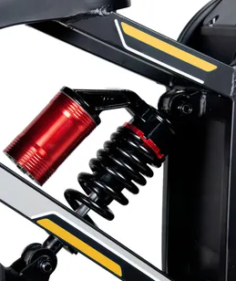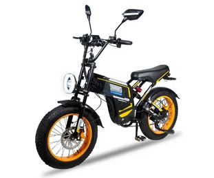 Электровелосипед оснащен подседельным амортизатором и пружинно-эластомерной вилкой, что улучшает комфорт при езде по неровным поверхностям. Половинчатая ручка газа делает управление более интуитивным, а наличие зеркал заднего вида и мощной фары повышает безопасность при передвижении по городским улицам.