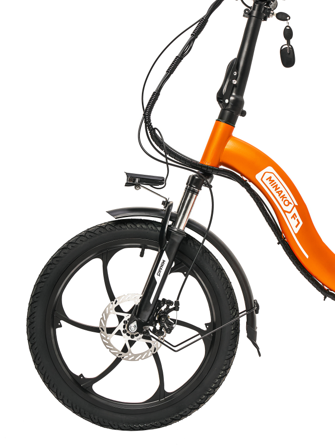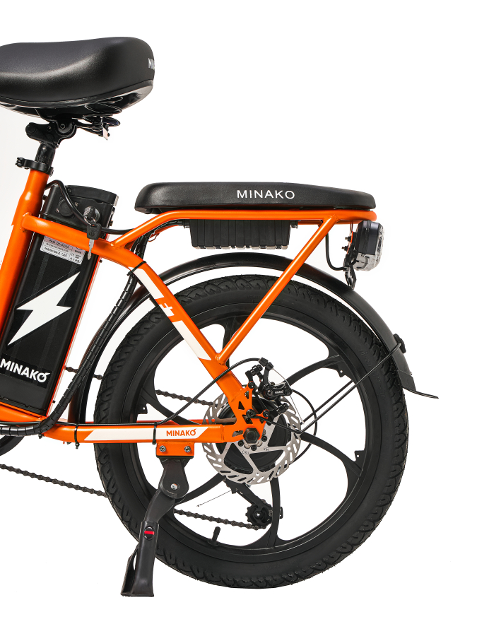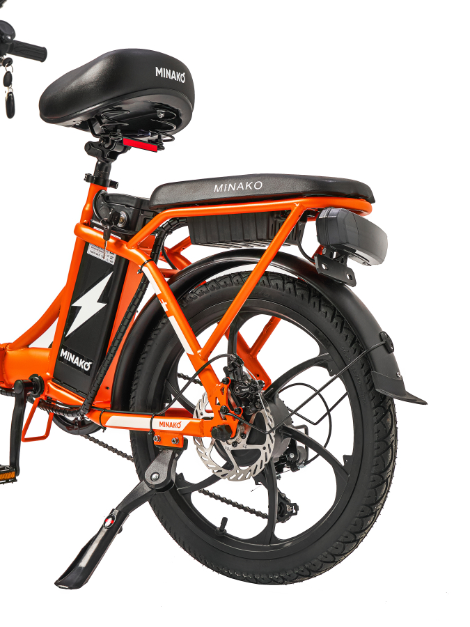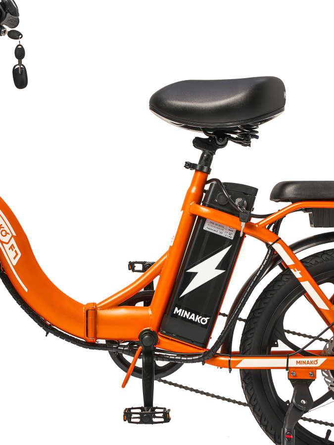 Minako F7 оборудован батареей емкостью 48V 10Ah, что позволяет ему обеспечивать хорошую дальность хода. Зарядное устройство с одним пином делает процесс зарядки простым и быстрым. Максимальная нагрузка в 150 кг позволяет использовать велосипед разными пользователями, включая тех, кто хочет взять с собой дополнительные вещи.