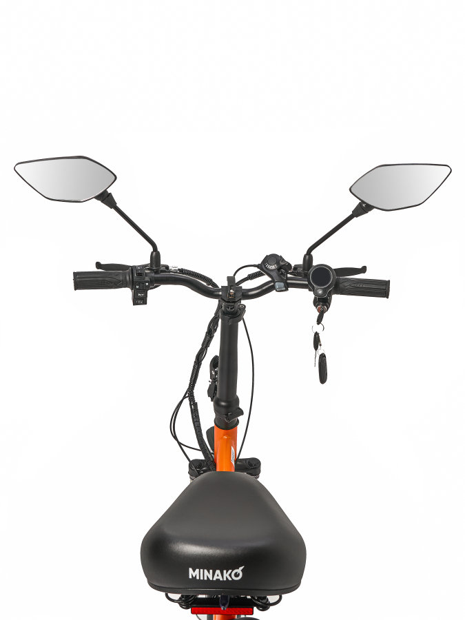 Электровелосипед Minako F7 оснащен сигнализацией, что добавляет дополнительный уровень защиты, особенно в общественных местах. Габариты в собранном виде составляют 170 х 110 х 60 см, что делает его достаточно компактным для использования в городской среде.