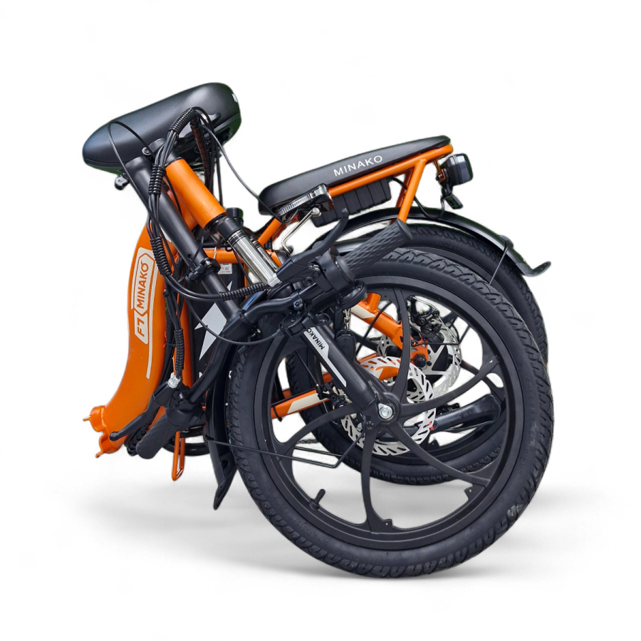 Рама велосипеда выполнена из прочной стали и имеет складной механизм, что делает его удобным для транспортировки и хранения. В сложенном состоянии размеры составляют 70 х 95 х 50 см, что позволяет легко помещать его в багажник автомобиля или хранить в ограниченном пространстве. С весом всего 33 кг, Minako F7 легко маневрировать и переносить.