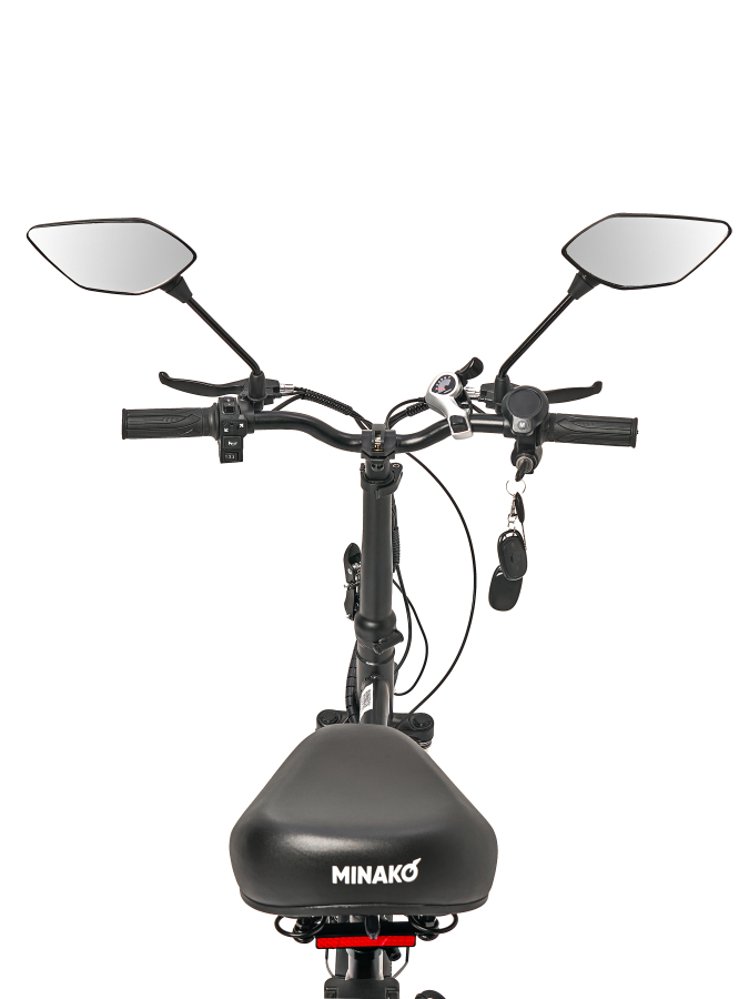 Электровелосипед Minako F7 оснащен сигнализацией, что добавляет дополнительный уровень защиты, особенно в общественных местах. Габариты в собранном виде составляют 170 х 110 х 60 см, что делает его достаточно компактным для использования в городской среде.